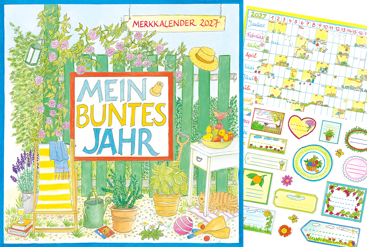 Alle ihre Kalender sind liebevoll von Hand gezeichnet, mit Freude am Detail … Zwischen Schreibtisch, Einkaufszettel und Blumenbeet entstehen ihre Ideen und so entspringen auch die Kalendertipps direkt dem alltäglichen Leben.